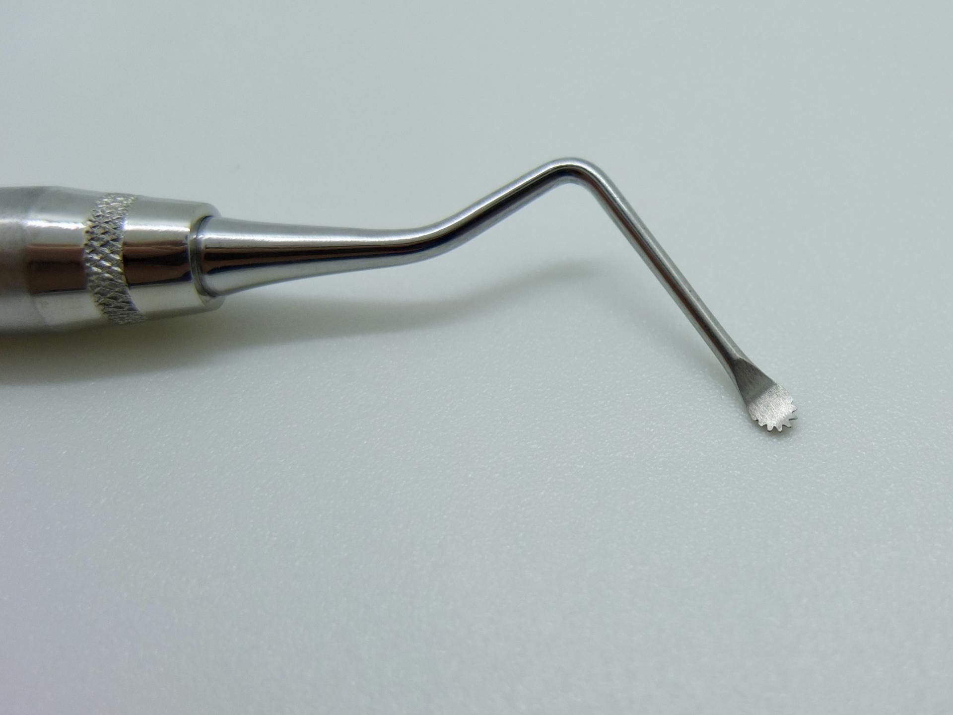 Curettes LUCAS serrated are particularly used after an extraction. Indeed, these curettes will allow alveolar trimming in order to eliminate cystic tissue (especially apical granulomas) or granulation tissue in the disinhabited alveolus.